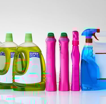 Productos de limpieza especializados: detergentes, desengrasantes, desincrustantes, sanitizantes, suavizantes, aromatizantes e insecticidas.